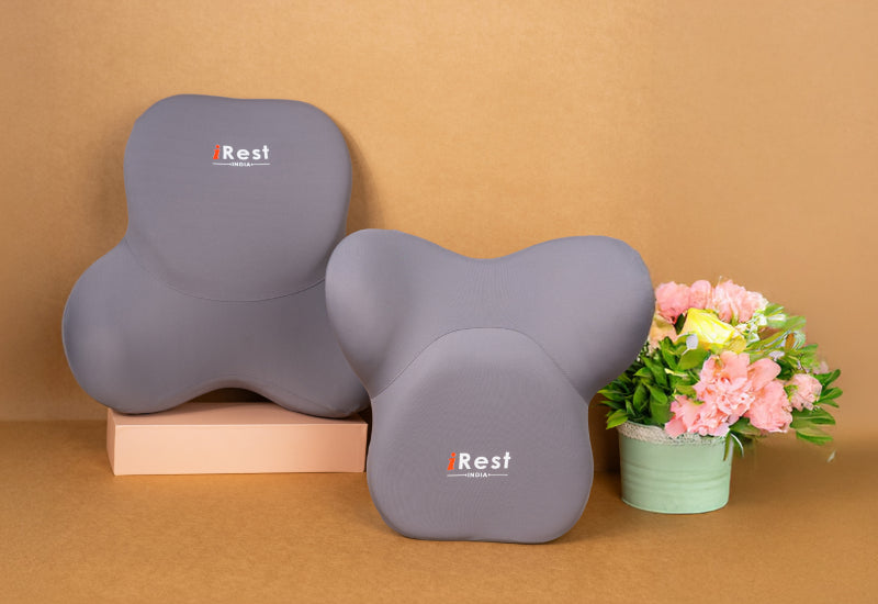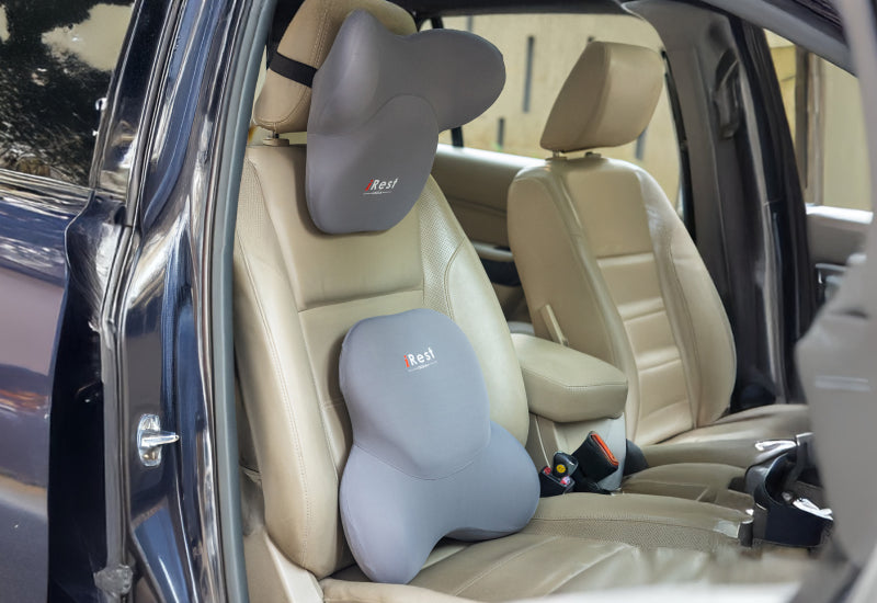 iRest Premium Car & Neck Pillow Grey and Brown